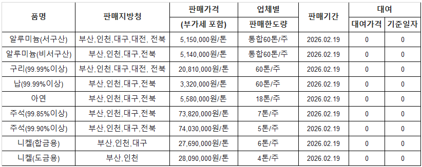 - ■ [표] 조달청 방출 가격(2월 12일)