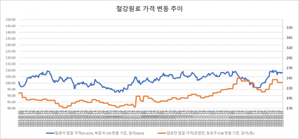 [표] 일일 철강 원료 가격 동향(4월 3일)