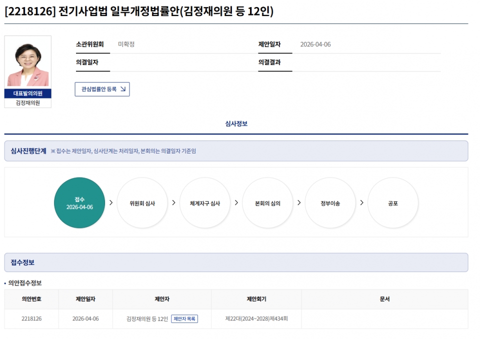 국회철강포럼 소속의원인 김정재 의원은 6일, 철강산업의 경쟁력 회복을 뒷받침하기 위해 ‘전기사업법 일부개정법률안(의안번호 2218126)’을 대표 발의했다고 밝혔다. 발의에는 국회의원 11명이 동참했다.