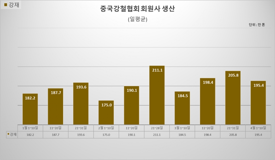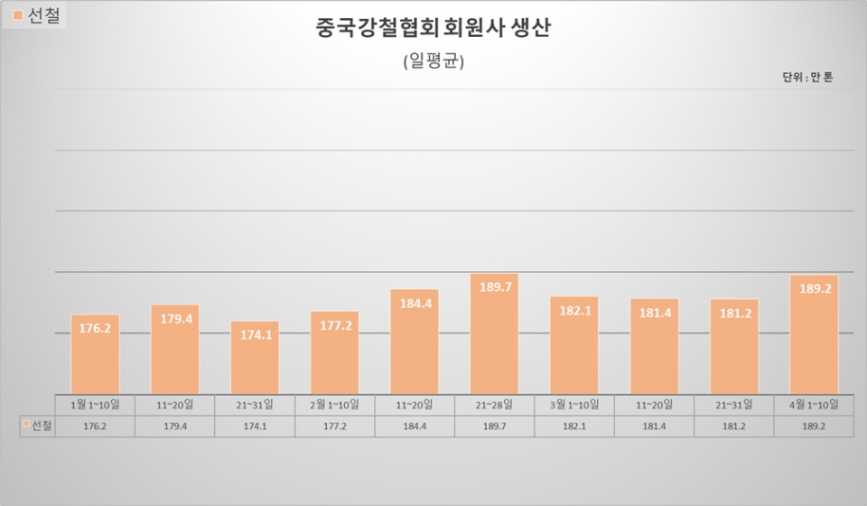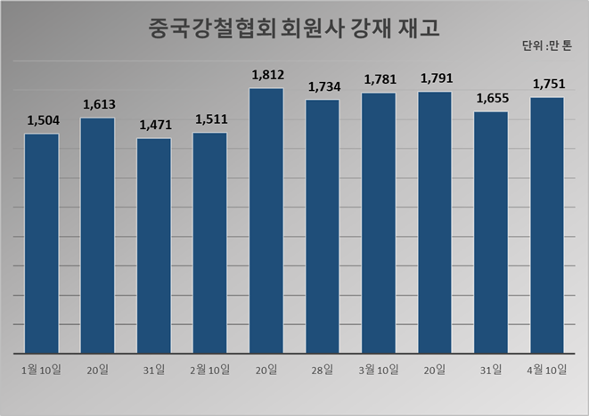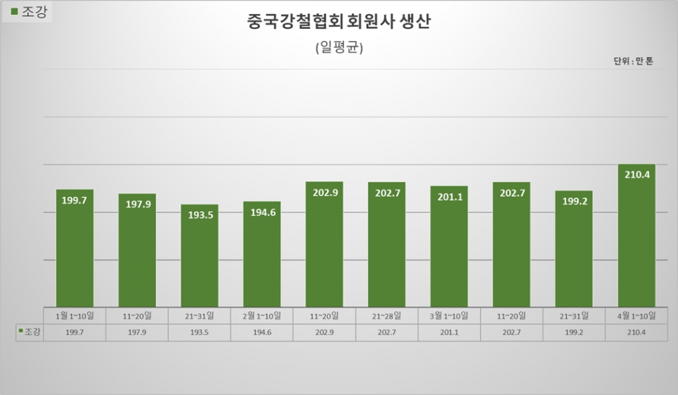 [오늘 중국은] 4월 초순 CISA 회원사, 조강 생산 올해 최대·재고↑